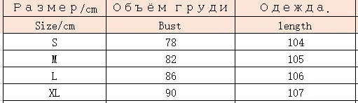 3.The size chart, from left to right, shows size, bust, and length.