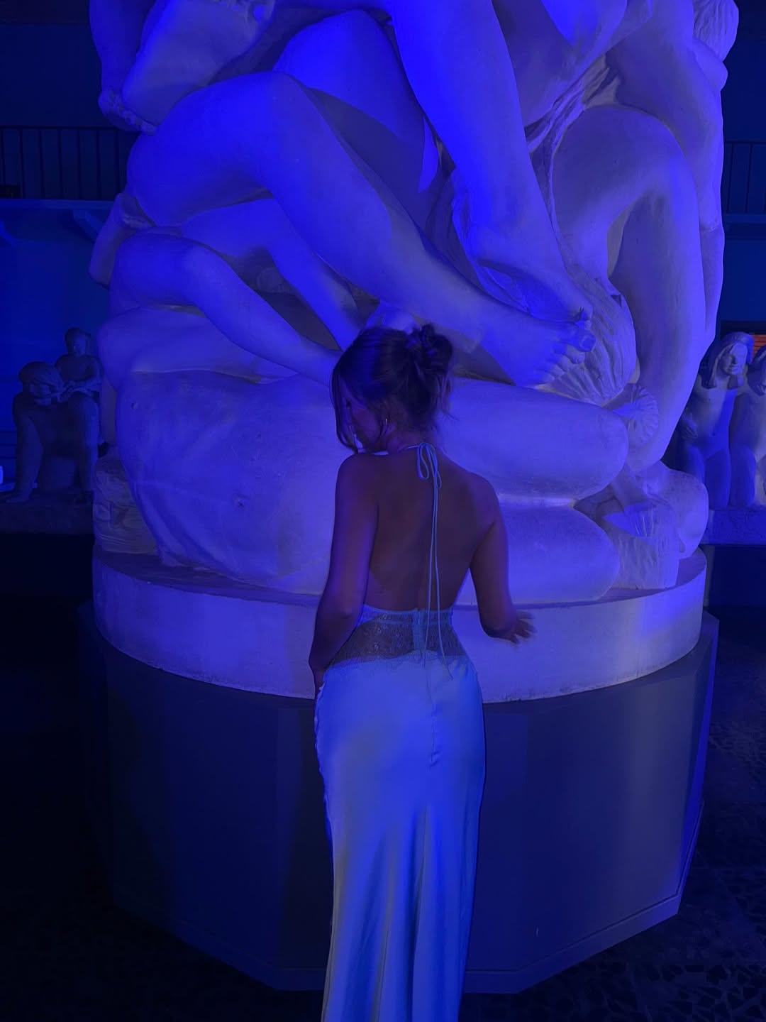 OHMABELLA PRIMROSE IVORY Long Maxi Dress is a breathtaking blend of elegance and allure. Designed with a plunging halter neckline and sheer lace waist panel, it highlights the silhouette with refined sensuality. The adjustable halter ties and open-back design add bold charm, while the flowing maxi skirt brings balance and graceful movement. Perfect for spring and summer soirées, weddings, and evening events, this dress is made to turn heads with timeless sophistication.
